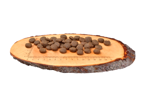 - SudėtisSudėtis: antienos miltai (30 %), fazano mėsos miltai (22 %), geltonieji žirneliai (20 %),vištienos riebalai (konservuoti tokoferoliais, 8 %), antiena be kaulų (5 %), vištienos kepenys (3 %), obuoliai (3 %), tapijokos krakmolas (3 %), lašišų aliejus (2 %), morkos (1 %), sėmenys (1 %), avinžirniai (1 %), hidrolizuoti vėžiagyvių kiautai (gliukozamino šaltinis, 0,026%), kremzlių ekstraktas (chondroitino šaltinis, 0,016%), alaus mielės (mano-oligosacharidų šaltinis, 0,015%), cikorijos šaknis (fruktooligosacharidų šaltinis, 0,01 %), juka šidigera (0,01 %), dumbliai (0,01 %), gyslotis (0,01 %), čiobreliai (0,01 %), rozmarinas (0,01 %), raudonėlis (0,01 %), spanguolės (0,0008 %), mėlynės (0,0008 %), avietės (0,0008 %). Analitinės sudedamosios dalys: žali baltymai 37,0 %, riebalų kiekis 18,0 %, žali pelenai 8,5 %, žalia ląsteliena 2,5 %, drėgmė 10,0 %, kalcis 1,8 %, fosforas 1,5 %. Maistiniai priedai 1 kg: vitaminas A (E672) 20 000 TV, vitaminas D3 (E671) 1 500 TV, vitaminas E (α-tokoferolis) (3a700) 400 mg, cinkas (E6) 85 mg, geležis (E1) 70 mg, manganas (E5) 35 mg, jodas (E2) 0,65 mg, varis (E4) 15 mg, selenas (3b8.10) 0,25 mg. Energinė vertė: 3 900 kcal/kg. Omega 3: 0,33 %, Omega 6: 2,34 %.