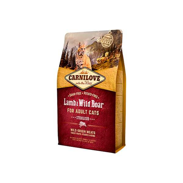 CARNILOVE Lamb&Wild Boar Adult Cat Sterilised sausas maistas sterilizuotoms katėms su ėriena ir šerniena 6 kg