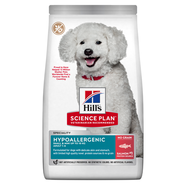 Prekės kodas: 231300 - Prekės aprašymasMažų ir miniatiūrinių veislių suaugusių šunų sausas maistas „Hill's Science Plan HYPOALLERGENIC“ su lašiša
