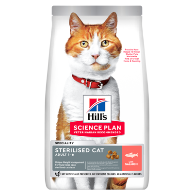 Prekės kodas: 69633 - Prekės aprašymasHILL'S SP Feline Sterilised Adult Cat Duck - visavertis sausas maistas su antiena suaugusioms sterilizuotoms katėms. Sausame ėdale „HILL'S SCIENCE PLAN Sterilized Cat Adult“ pritaikyta unikali svorio reguliavimo formulė, kuri sterilizuotai katei padeda išlikti lieknai, sumažina riebalų kaupimąsi ir išsaugo raumenų masę. Pagamintas iš aukštos kokybės ir lengvai virškinamų produktų. Svarbiausi privalumai: Klinikiniais tyrimais patvirtinta, kad L-karnitinas padeda katėms išlikti lieknoms ir aktyvioms. Reguliuojamas mineralinių medžiagų kiekis palaiko šlapimo sistemos sveikatą. Mažesnis riebalų kiekis ir didesnis L-lizino kiekis padeda išlaikyti gyvybingumą. Rekomenduojama: Suaugusioms sterilizuotoms katėms nuo 1 metų amžiaus. Nerekomenduojama: Jaunesnėms negu 1 metų katėms, vaikingoms ar žindančioms katėms. Vaikingas arba žindančias kates reikėtų šerti konservuotu arba sausu ėdalu „HIIL'S SCIENCE PLAN Kitten“. Laikymo sąlygos: laikyti sausoje ir vėsioje vietoje. Atidarius pakuotę laikyti sandariai, vaikams ir gyvūnams nepasiekiamoje vietoje. Gamintojas: Hill’s Pet Nutrition, Inc.