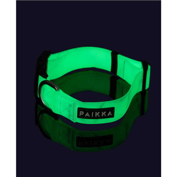 PAIKKA švytintis antkaklis šunims, L 2,5x35-48cm, žalias