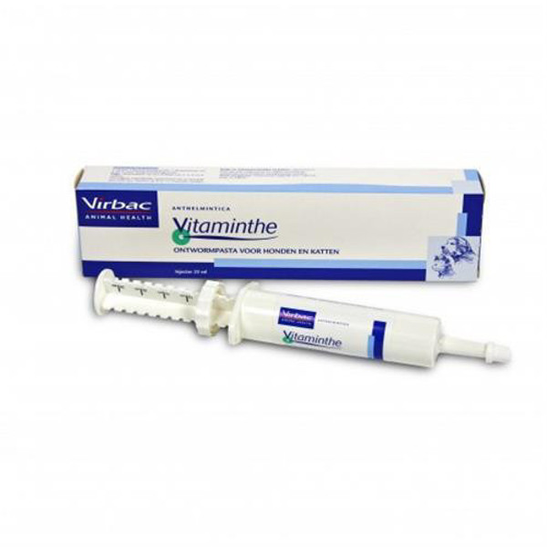 Prekės kodas: 230197 - Prekės aprašymas1. VETERINARINIO VAISTO PAVADINIMAS Vitaminthe, geriamoji pasta šunims ir katėms 2. KOKYBINĖ IR KIEKYBINĖ SUDĖTIS 1 ml geriamosios pastos yra: Veikliosios (-iųjų) medžiagos (-ų): niklozamido 0,24 g, oksibendazolo 0,03 g; pagalbinių medžiagų: natrio benzoato (E211) 0,0022 g, ančiuvių miltelių 0,012 g, natrio bisulfito 0,001 g. Išsamų pagalbinių medžiagų sąrašą žr. 6.1 p. 3. VAISTO FORMA Nuo kreminės iki geltonos spalvos pasta. 4. KLINIKINIAI DUOMENYS 4.1. Paskirties gyvūnų rūšis (-ys) Katės, šunys. 4.2. Naudojimo indikacijos, nurodant paskirties gyvūnų rūšis Šunims ir katėms, užsikrėtusiems nematodais bei cestodais (Toxacara canis, T. cati, Toxascaris leonina, Ancylostoma caninum, Uncinaria stenocephala, Dipylidium caninum), gydyti. 4.3. Kontraindikacijos Negalima naudoti jaunesniems kaip 6 savaičių amžiaus kačiukams ar šuniukams. Negalima naudoti, jei gyvūnai viduriuoja, ar jiems pasireiškė žarnyno obstrukcija. Negalima naudoti, jei įtariamas atsparumas benzimidazolams. Negalima naudoti, esant padidėjusiam jautrumui veikliosioms medžiagoms ar bet kuriai iš pagalbinių medžiagų. 4.4. Specialieji nurodymai, naudojant atskirų rūšių paskirties gyvūnams Nėra. 4.5. Specialiosios naudojimo atsargumo priemonės Specialiosios atsargumo priemonės, naudojant vaistą gyvūnams Per dažnai ir ilgą laiką pakartotinai nenaudoti tos pačios klasės antihelmintikų, kad dėl to neišsivystytų atsparumas ir gydymas netaptų neveiksmingu. Specialiosios atsargumo priemonės asmenims, naudojantiems vaistą gyvūnams Jei asmeniui nustatytas padidėjęs jautrumas veikliosioms medžiagoms, reikia vengti tiesioginio sąlyčio su oda.. Po naudojimo reikia nusiplauti rankas. Atsitiktinai prarijus, reikia nedelsiant kreiptis į gydytoją ir parodyti šio vaisto informacinį lapelį arba etiketę. Užterštas išmatas reikia pašalinti. Būtina pasirūpinti, kad gydyti gyvūnai būtų atokiai nuo vaikų. 4.6. Nepalankios reakcijos (dažnumas ir sunkumas) Retai gali pasireikšti praeinantys virškinimo sutrikimai (viduriavimas, vėmimas). Trumpam laikui gali suminkštėti išmatos. Retais atvejais gali pasireikšti letargija ir neurologiniai požymiai (pvz., drebulys, ataksija ir svirduliavimas). Nepalankių reakcijų dažnumas nustatytas vadovaujantis tokia konvencija: - labai dažna (nepalanki (-ios) reakcija (-os) pasireiškė daugiau nei 1 iš 10 gydytų gyvūnų), - dažna (daugiau nei 1, bet mažiau nei 10 iš 100 gydytų gyvūnų), - nedažna (daugiau nei 1, bet mažiau nei 10 iš 1 000 gydytų gyvūnų), - reta (daugiau nei 1, bet mažiau nei 10 iš 10 000 gydytų gyvūnų), - labai reta (mažiau nei 1 iš 10 000 gydytų gyvūnų, skaičiuojant ir atskirus pranešimus). 4.7. Naudojimas vaikingumo, laktacijos ar kiaušinių dėjimo metu Veterinarinio vaisto saugumas vaikingumo ir laktacijos metu nenustatytas. Naudoti tik atsakingam veterinarijos gydytojui įvertinus naudą ir riziką.. 4.8. Sąveika su kitais vaistais ir kitos sąveikos formos Nežinoma. 4.9. Dozės ir naudojimo būdas Vaistą reikia sušerti. Skirti 15 mg oksibendazolo ir 120 mg niklozamido 1 kg kūno svorio, o tai atitinka 0,5 ml geriamosios pastos 1 kg kūno svorio. 5 ml švirkštas: kiekviena padala atitinka 0,5 kg kūno svorio. 10 ml švirkštas: kiekviena padala atitinka 2 kg kūno svorio. 25 ml švirkštas: kiekviena padala atitinka 10 kg kūno svorio. Reikiamą pastos kiekį reikia duoti vieną kartą, suleidžiant gyvūnui į burną ant liežuvio ar su ėdesiu. Prieš skiriant tinkamą dozę gyvūno kūno svorį reikia nustatyti kiek įmanoma tiksliau. Kačiukus ir šuniukus reikia gydyti du kartus kas mėnesį (6–12 sav. amžiaus). Suaugusius gyvūnus reikia gydyti kas 6 mėn. Veisiamas pateles reikia gydyti tris kartus: kergimo laikotarpiu, likus 1 sav. iki atsivedimo ir po to praėjus 3–4 sav. 4.10. Perdozavimas (simptomai, pirmosios pagalbos priemonės, priešnuodžiai), jei būtina Perdozavus, gali pasireikšti neurologiniai požymiai, pvz., drebulys, ataksija ir svirduliavimas. 4.11. Išlauka Netaikytina. 5. FARMAKOLOGINĖS SAVYBĖS Farmakoterapinė grupė: fenolio dariniai ir panašios medžiagos. ATC vet. kodas: QP52AC57. 5.1. Farmakodinaminės savybės Niklozamidas slopina oksidacinius procesus kaspinuočių mitochondrijose, todėl parazitai sunaikinami ir ištirpdomi virškinimo trakte. Oksibendazolas yra benzimidazolo darinys, kuris veikia sutrikdydamas parazitų energijos apykaitą. 5.2. Farmakokinetinės savybės Abi veikliosios medžiagos virškinimo trakte absorbuojamos menkai, todėl vaistas yra mažai toksiškas. 6. FARMACINIAI DUOMENYS 6.1. Pagalbinių medžiagų sąrašas Natrio bisulfitas, natrio benzoatas, dekvalino chloridas, ksantano lipai, natrio polinaftaleno sulfonatas, dimetikonas 300, natrio ciklamatas, ančiuvių milteliai, putojimą slopinanti medžiaga 70426, išgrynintas vanduo. 6.2. Nesuderinamumai Nežinoma. 6.3. Tinkamumo laikas 5 ml: Veterinarinio vaisto tinkamumo laikas, nepažeidus originalios pakuotės, – 18 mėn. 10 ml, 25 ml: Veterinarinio vaisto tinkamumo laikas, nepažeidus originalios pakuotės, – 24 mėn. Tinkamumo laikas, atidarius pirminę pakuotę,– 6 mėn. 6.4. Specialieji laikymo nurodymai Negalima laikyti aukštesnėje kaip 25°C temperatūroje. 6.5. Pirminės pakuotės pobūdis ir sudedamosios dalys Baltos spalvos plastikinis švirkštas kartoninėje dėžutėje. Pakuotės dydžiai: 5 ml, 10 ml, 25 ml. Gali būti tiekiamos ne visų dydžių pakuotės. 6.6. Specialios nesunaudoto veterinarinio vaisto ar su jo naudojimu susijusių atliekų naikinimo nuostatos Nesunaudotas veterinarinis vaistas ar su juo susijusios atliekos turi būti sunaikintos pagal šalies reikalavimus. 7. REGISTRUOTOJAS Virbac S.A. 1 ère Avenue 2065 m L.I.D. 06516 Carros PRANCŪZIJA 8. REGISTRACIJOS NUMERIS (-IAI) LT/2/01/1233/001-003 9. REGISTRACIJOS / PERREGISTRACIJOS DATA Registracijos data: 2001-