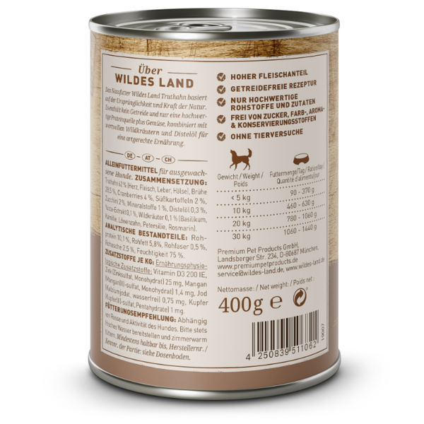 WILDES LAND Classic Adult konservai šunims su kalakutiena ir batatais 400 g
