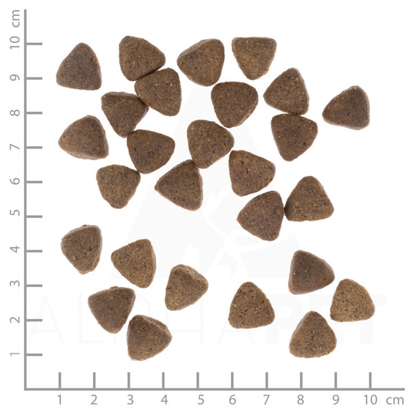 - SudėtisAntis 50 % (iš jų šviežia antienos mėsa 25 %, džiovinta antienos mėsa 25 %), bulvės 16 %, saldžiosios bulvės, moliūgai, ančių riebalai 4 %, ančių sultys 2 %, avinžirniai, pankoliai, pastarnokai, mineralai, sėmenys, topinambai, gliukozaminas, metilsulfonilmetanas (MSM), chondroitino sulfatas, pomidorai, čiobreliai, mairūnai, raudonėliai, petražolės, šalavijai, gervuogės, avietės, mėlynės, juodieji serbentai, šeivamedžio uogos, aronijų uogos, dilgėlės, gudobelės, kiaulpienės, ženšenis, manano-oligosacharidai (prebiotikas MOS), frukto-oligosacharidai (prebiotikas FOS), Yucca Schidigera ekstraktas. Analitinės sudedamosios dalys: Žali baltymai 30 %, žali riebalai 21 %, žali pelenai 8 %, žalia ląsteliena 2 %. Priedai 1 kg: Vitaminas A (retinilo acetatas) 25 730 TV, vitaminas D3 (cholekalciferolis) 1 730 TV, vitaminas E (all-rac-alfa-tokoferilacetatas) 835 mg, geležis (geležies (II) sulfatas, monohidratas; geležies (II) aminorūgščių chelatas, hidratas) 95 mg, cinkas (cinko sulfatas, monohidratas; aminorūgščių cinko chelatas, hidratas) 150 mg, manganas (mangano (II) sulfatas, monohidratas) 36 mg, varis (vario (II) sulfatas, pentahidratas; aminorūgščių vario chelatas, hidratas) 15 mg, jodas (bevandenis kalcio jodatas) 0,96 mg, selenas (natrio selenitas) 0,23 mg, DL-metioninas 2 126 mg, taurinas 1 000 mg, L-karnitinas 82 mg.