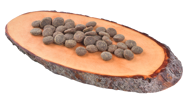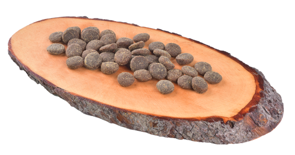 - SudėtisSudėtis: šviežia kalakutiena (60 %), žirniai, vištienos riebalai (konservuoti tokoferoliais), avinžirniai, džiovinti obuoliai, raudonieji lęšiai (4 %), moliūgai, natūralios kvapiosios medžiagos, lašišų aliejus (2 %), morkos, džiovinti kiaušinių lukštai, plūdenos baltymai (0,5 %), spirulina (0,3 %), džiovinti šaltalankiai (0,2 %), džiovintos imbiero šaknys (0,1 %), džiovintos mėlynės (0,1 %), džiovintas rozmarinas (0,1 %), džiovintos bruknės (0,1 %), džiovinti čiobreliai (0,1 %), gliukozaminas (0,026 %), žalioji midija (0,025 %), chondroitino sulfatas (0,016 %), alaus mielės (mannanoligosacharidų šaltinis, 0,015 %), cikorijos šaknis (fruktooligosacharidų šaltinis, 0,01 %), šeriuotoji juka (0,01 %). Analitinės sudedamosios dalys: neapdoroti baltymai 26,0 %, riebalai 18,0 %, drėgmė 10,0 %, neapdoroti pelenai 9,5 %, neapdorota ląsteliena 4,0 %, kalcis 1,3 %, fosforas 0,9 %, natris 0,3 %, omega-3 0,25 %, omega-6 1,7 %, EPA (20:5 n-3) 0,1 %, DHA (22:6 n-3) 0,15 %. Priedai 1 kg pašaro: vitaminas A (3a672a) 20000 IU, vitaminas D3 (3a671) 1500 IU, vitaminas E (3a700) 400 mg, vitaminas C (3a312) 250 mg, taurinas (3a370) 1500 mg, L-karnitinas (3a910) 50 mg, cholinchloridas (3a890) 1800 mg, niacinamidas (3a315) 20 mg, biotinas (3a880) 0,5 mg, cinkas (3b606) 80 mg, geležis (3b106) 60 mg, manganas (3b504) 35 mg, jodas (3b201) 0,65 mg, varis (3b406) 15 mg, selenas (3b810) 0,2 mg. Sudėtyje yra natūralių antioksidantų: tokoferolio ekstraktai iš augalinių aliejų (1b306(i)), askorbilo palmitatas (1b304) ir rozmarino ekstraktas. Metabolizuojama energija: 3720 kcal/kg.
