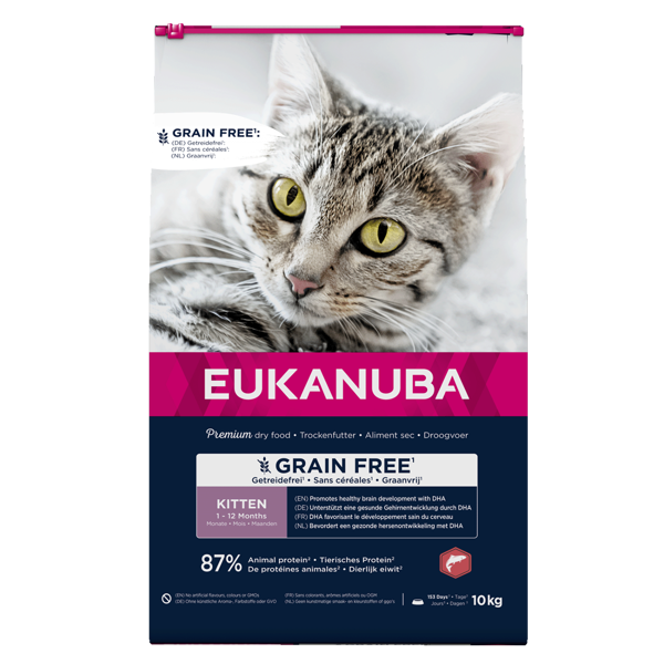 Eukanuba Grain Free Kitten begrūdis maistas kačiukams su lašiša, 10 kg