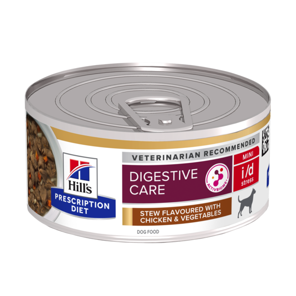 Prekės kodas: 230995 - Prekės aprašymasŽingsnis į priekį jų geriausio gyvenimo link. Hill's PRESCRIPTION DIET i/d Stress Mini Digestive Care Stew šunų pašaras su vištiena ir daržovėmis yra specialiai sukurtas Hill's dietologų ir veterinarijos gydytojų, siekiant nuraminti ir valdyti su stresu susijusį elgesį, įskaitant virškinimo sutrikimus, šunims, sveriantiems mažiau nei 14 kg.