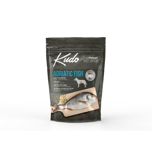 KUDO Adriatic Fish sausas maistas vidutinių ir didelių veislių suaugusiems šunims su žuvimi 3 kg