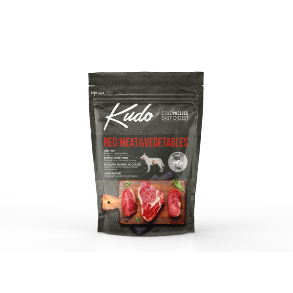 KUDO Red Meat&Vegetables sausas maistas vidutinių ir didelių veislių šunims su jautiena 3 kg