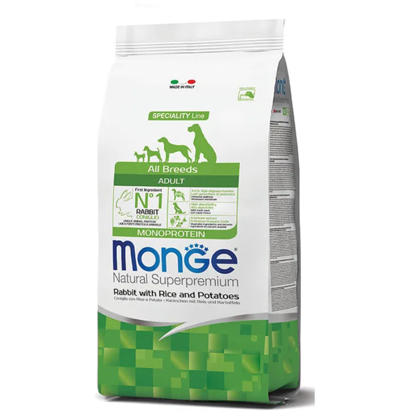 MONGE Adult sausas maistas šunims su triušiena, 12 kg