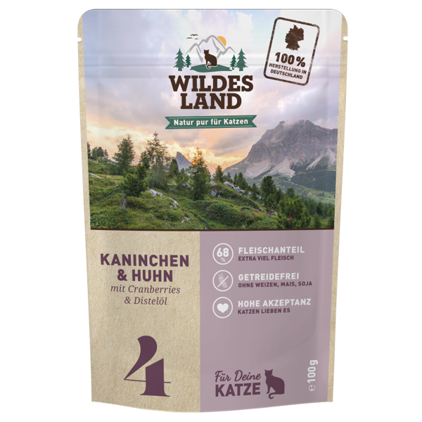 Prekės kodas: 227438 - Prekės aprašymasWildes Land rabbit and chicken - daug vištienos ir triušienos savo sudėtyje turintis šlapias ėdalas suaugusioms katėms. Maistas yra be grūdų ir atitinka natūralią, katėms tinkamą mitybą. „Wildes Land“ žino, kokia svarbi jūsų augintinio gerovei yra tinkama mityba. Mūsų „Classic Adult“ linijos šlapias pašaras su tiušiena ir vištiena yra be ir grūdų, jis puikiai toleruojamas. Sudėtyje yra didelė mėsos ir subproduktų dalis - 68 %. Maiste taip pat gausu vitaminų ir mineralų, kad būtų patenkinti jūsų katės kasdieniai poreikiai. Be kita ko, jame yra cinko, vitamino D3, jodo, vario ir taurino. Taigi galite būti tikri, kad jūsų numylėtinis džiaugsis geriausia kokybe. Su „Classic Adult“ linijos šlapiu ėdalu į jūsų katės dubenėlį patenka tik natūralūs ingredientai, kurie yra optimaliai pritaikyti jūsų mylimojo poreikiams. Pašare su triušiena ir vištiena nėra priedų, tokių kaip konservantai, dažiikliai ir kvapiosios medžiagos. Pašaras kurimo ir gamybos procese, žinoma, nėra išbandytas su gyvūnais, ir yra sukurtas ir pagamintas Vokietijoje. Tinkamas visų veislių suaugusioms katėms. Privalumai: Vertingi vitaminai ir mineralai. Be grūdų. Tik natūralūs ir kokybiški ingredientai. Be konservantų, dažiklių ir kvapiųjų medžiagų. Ypač gerai toleruojamas. Nebandyta su gyvūnais