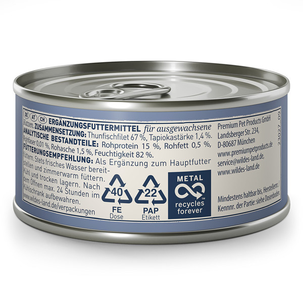 Prekės kodas: 105336 Konservai katėms su tuno filė ir natūraliomis mėsos sultimis – be grūdų, cukraus, dažiklių ir konservantų