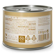 Prekės kodas: 105330 Konservai katėms su antiena, kalakutiena, saldžiosiomis bulvėmis, mėlynėmis ir lašišų aliejumi – be grūdų, cukraus, dažiklių ir konservantų.
