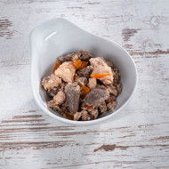 Prekės kodas: 105333 - Prekės aprašymas„Daugelis gyvūnų savininkų susiduria su iššūkiu, kaip pamaitinti išrankų tigrą. Todėl mūsų mitybos ekspertai sukūrė „Wildes Land Ragout“ drėgną ėdalą katėms, kuris stebina puikiu priėmimu ir toleravimu. Subalansuotas racionas su aukštos kokybės baltymais yra būtinas jūsų katės gerovei. Wildes Land Ragout triušienos ir vištienos drėgnas maistas su brokoliais, morkomis, medetkomis ir lašišų aliejumi. Jame yra matomų, sultingų tikros, smulkiai supjaustytos triušienos ir vištienos mėsos ir subproduktų gabalėlių, švelniai virtų jų pačių sultyse, kad būtų užtikrintas ypatingas skonis ir katės pamėgtų šį ėdalą. Tarsi šviežiai paruoštas, rafinuotos receptūros pabrėžia gryną visų ingredientų skonį, o padaže esantys gabaliukai įtiks net išrankiausioms letenėlėms. Iš viso 65 % mėsos ir subproduktų yra derinama su brokoliais, morkomis, medetkomis, vertingu lašišų aliejumi, taip pat mineralinėmis medžiagomis ir vitaminais, kad būtų užtikrintas rūšiai tinkamas racionas. Wildes Land Ragout aprūpina jūsų katę visomis svarbiomis maistinėmis medžiagomis, reikalingomis ilgam ir aktyviam gyvenimui. Wildes Land Ragout puikiai tinka visų veislių suaugusioms katėms. „Wildes Land's“ drėgno ėdalo sudėtyje nėra pridėtinių grūdų, cukraus, dažiklių, kvapiųjų medžiagų ar konservantų. Be to, jis be išimties kuriamas ir gaminamas be bandymų su gyvūnais. Visos raguočių rūšys gaminamos su meile Vokietijoje. Su „Wildes Land Ragout“ - gryna gamta tiesiai į jūsų dubenėlį!“