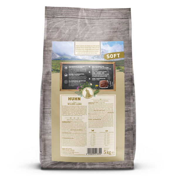 WILDES LAND Soft chicken&rice sausas begrūdis pašaras suaugusiems šunims su vištiena ir ryžiais, 5 kg